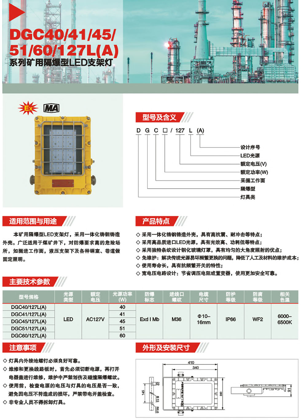 DGC40/41/45/51/60/127L矿用隔爆型LED支