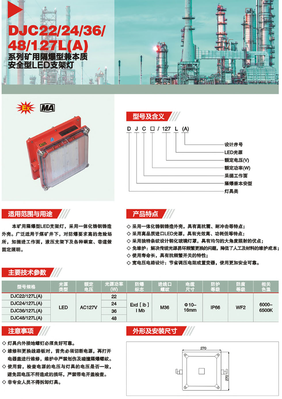DGC22/24/36/48/127L(A)矿用隔爆型兼本质安全型LED支架灯
