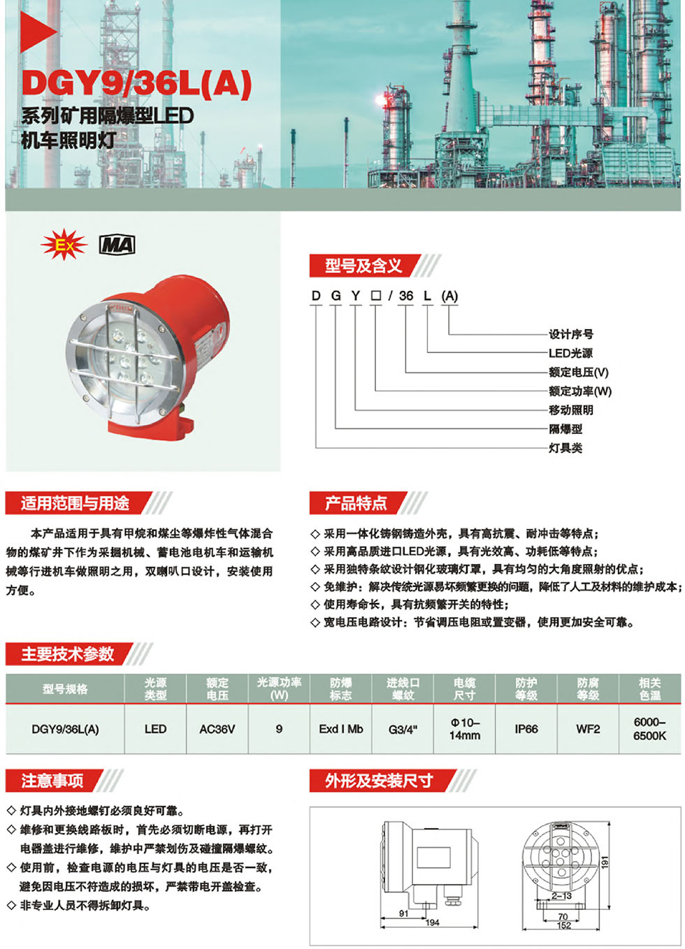 DGY9/12/36/36L/24/127L(A)矿用隔爆型LED机车照明灯
