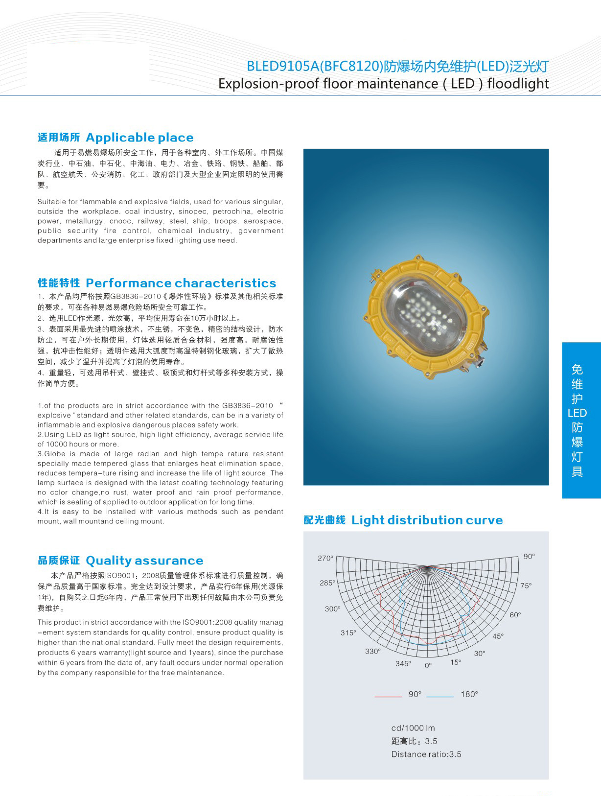 BLED9105A(BFC8120)防爆场内免维护(LED)泛光灯、一体式马路灯