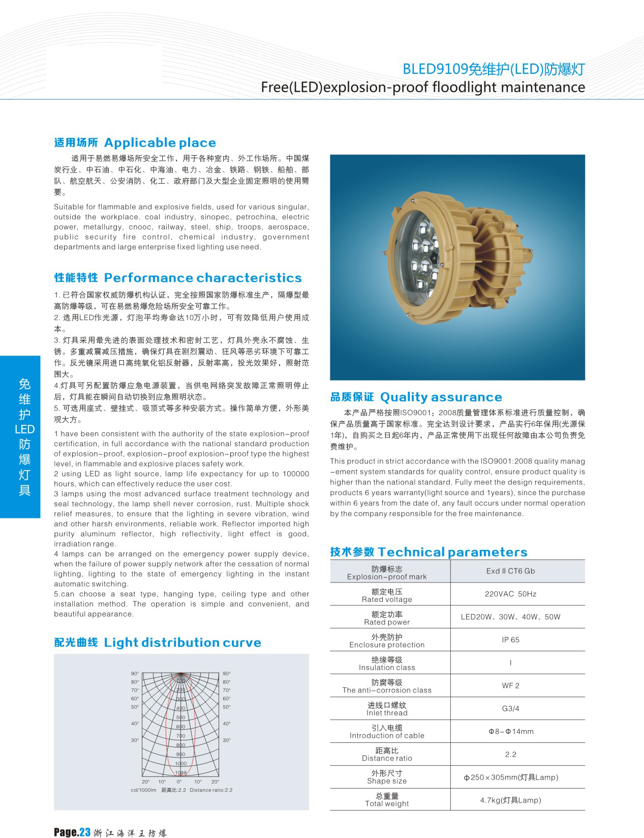 BLED9105A(BFC8120)防爆场内免维护(LED)泛光灯、一体式马路灯