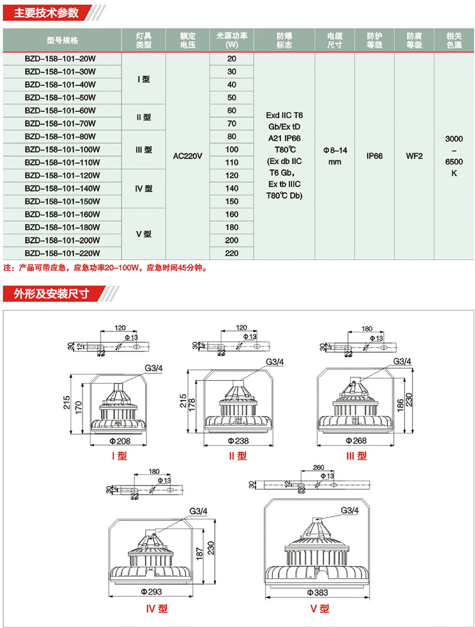 20/50/70/80/100/120/150/200/220W防爆免维护LED照明灯