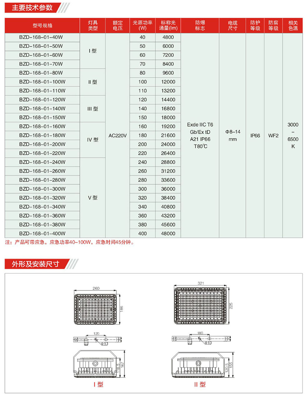 40/50/60/70/80/100/120/150/180/200/240/280/300/360/400W防爆免维护LED泛光灯