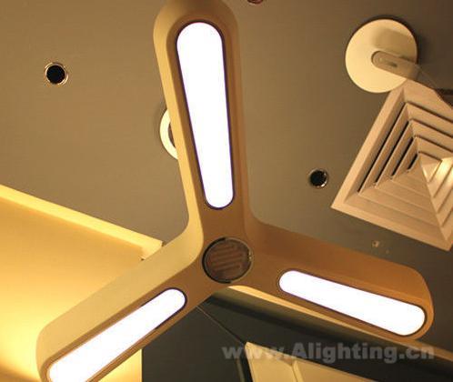 如果不按下开关,相信大多数人远远看去,真以为它是一架老式吸顶风扇。圆弧形的“扇页”末端设计让这款灯具看起来俏皮可爱,特别适合有小孩的家庭或年轻的夫妇使用。